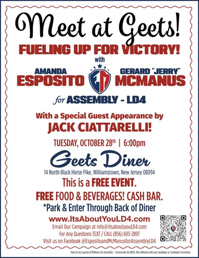 Politics isn’t a spectator sport, your involvement makes the difference. Let’s make it a night to remember AND a turning point for Legislative District 4. Come out for a great night out. We look forward to seeing you.